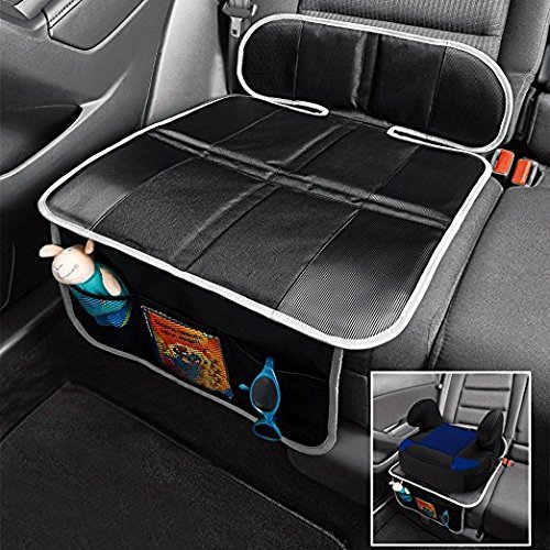 Big Hippo 純正チャイルドシートマット 車シートマット 収納ポケット付き 前後座席汎用 滑り止め ブラック