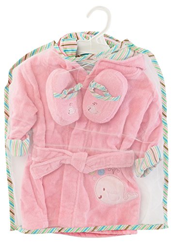 100% Super soft cotton.;Machine washable.;Bathrobe and slippers are perfect for your baby after warm bath.;Suitable for 0-9 months.;Gift packaging style comes in a mesh.