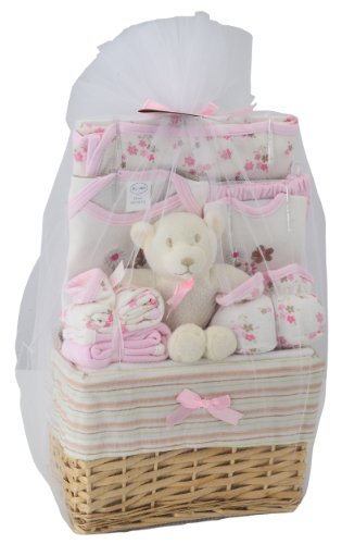 Contents: 100% soft comfort Cotton. Machine washable Imported. Basket includes: Bodysuit, Pants, Blanket, 2 Burp Clothes, Bib, Washcloth, Toy and Booties A perfect take me home set! Fits Newborn to 6 months High quality materials and workmanship - guaranteed Available in different colors to best meet your need and taste Perfect Baby Shower gift idea. Comes in gift style packaging.