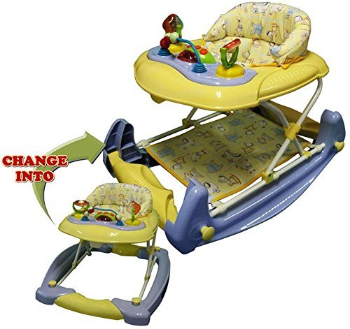 Double function of rocker & walker, easy to change in less than a minute.;Adjust the seat to baby's perfect needs, with safety buttons.;High back seat provide extra support for baby.;Foldable base can fold flat for easy storage and travel;Soft seat for baby protection, can be removed and washed.