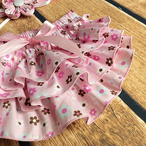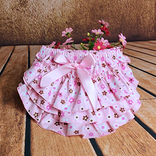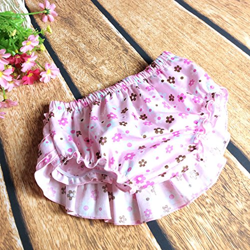 (ビグッド)Bigood ベビートレーニングパンツ 女の子 可愛い 赤ちゃんフリル パンツ 女児 ブルマ フリフリ ショートパンツ 肌着 記念写真 出産祝い リボン 花柄 ピンク L