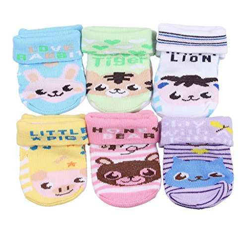 (ビグッド)Bigood ベビー靴下 新生児 ソックスセット 可愛いアニマル柄 コットン キッズ 子供 滑り止め靴下 女の子 ショートソックス 6足入りセット ミックス 混色