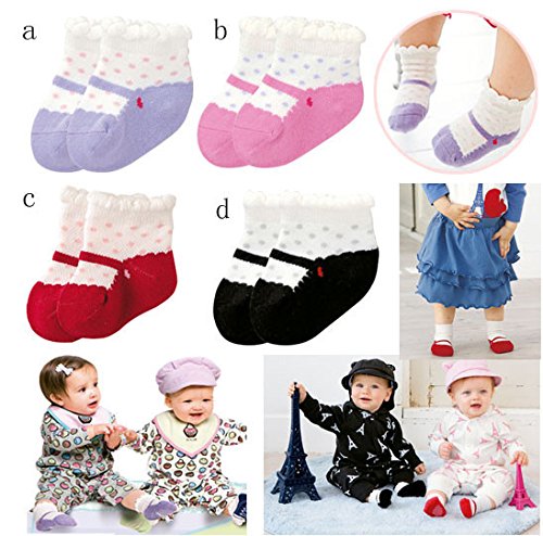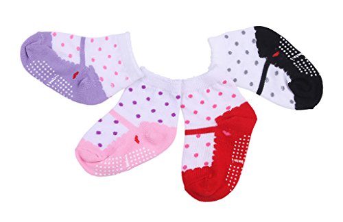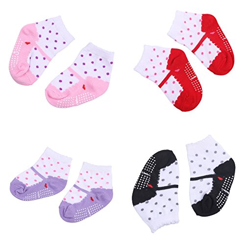 (ビグッド)Bigood ベビー靴下 新生児 ソックスセット ドット柄 コットン キッズ 子供 滑り止め靴下 女の子 ショートソックス 4足入りセット ミックス 混色