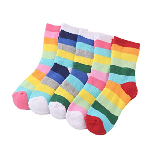 (ビグッド)Bigood 可愛い 5足セット ベビー キッズ 男の子 靴下 ソックス 子供用 ショートソックス 女の子 綿 ボーダー 出産祝い 秋 冬 色 ランダム 厚手 防寒 カラフル L