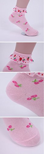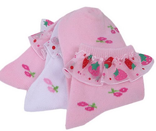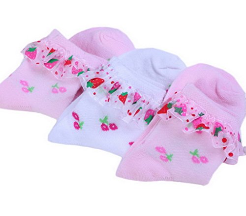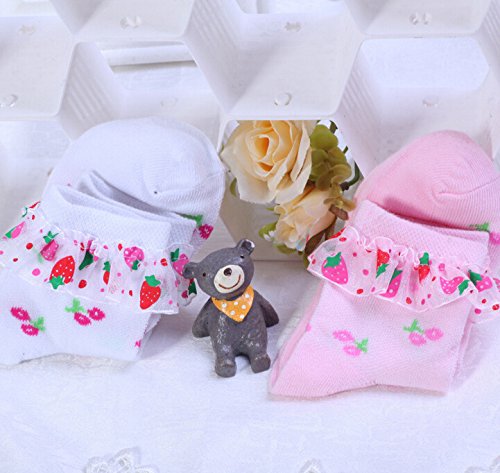 (ビグッド)Bigood 可愛い イチゴ柄 2足セット ベビー キッズ レース 靴下 ソックス 子供 ショートソックス 女の子 綿 秋 冬 色 ランダム フォーマル 発表会 七五三 ピンク 白 S