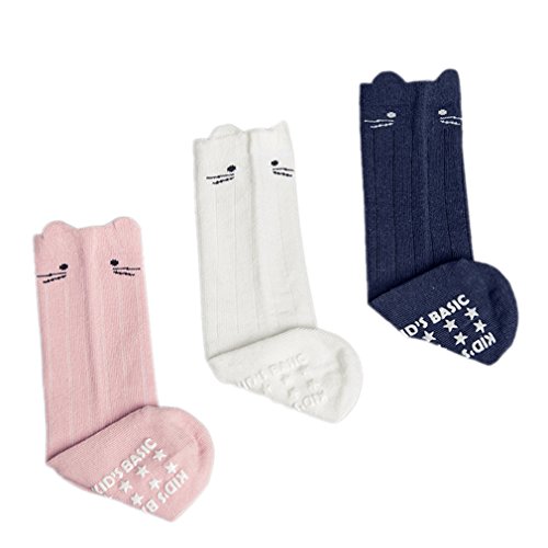 (ビグッド)Bigood 可愛い ベビー靴下 ハイソックス 新生児 赤ちゃん ソックス 女の子 男の子 子供用 幼稚園 秋冬 保温 防寒 猫柄 3足セット S