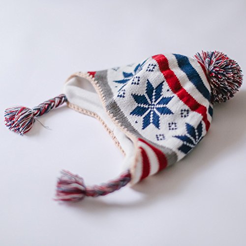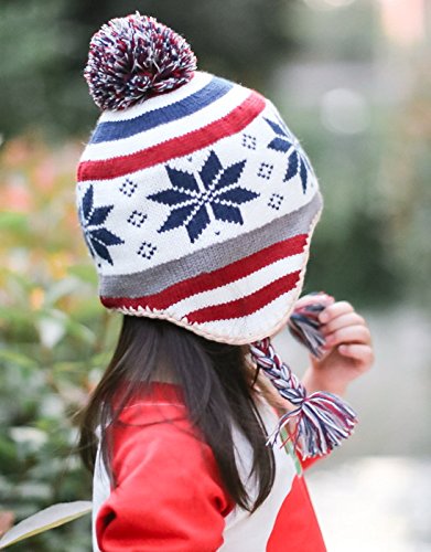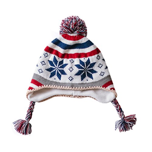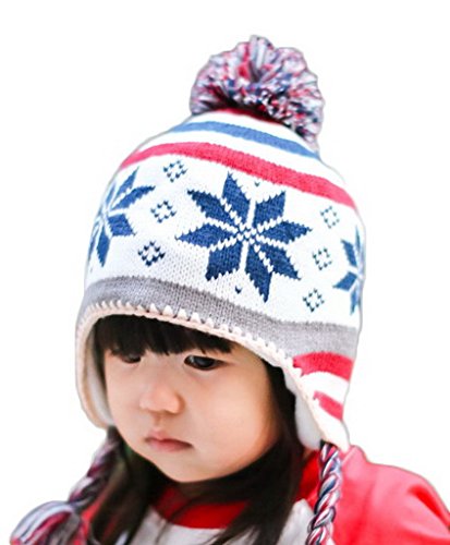 (ビグッド)Bigood 可愛い 秋冬 ニット帽 キッズ 女の子 帽子 赤ちゃん ベビー 帽子 ボンボン付き 子供用 男の子 防寒 耳あて アウター オレンジ 雪柄 ボーダーS
