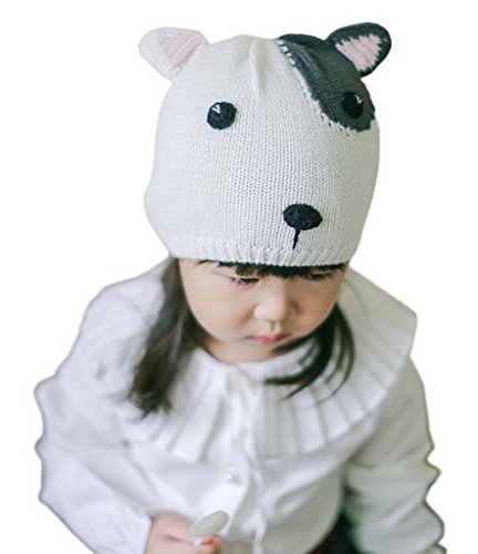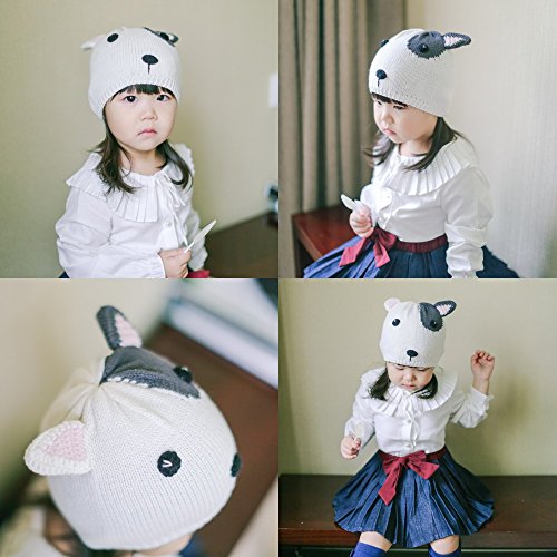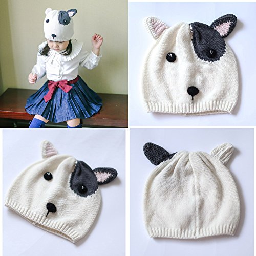 (ビグッド)Bigood 可愛い 帽子耳付き 赤ちゃん ベビーワッチキャップ 出産祝い 新生児 ニット帽 キッズ 女の子 秋冬 子供 ニットキャップ 子犬柄 M