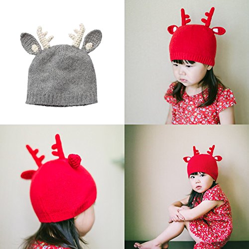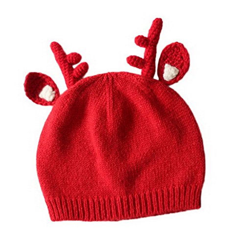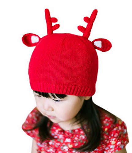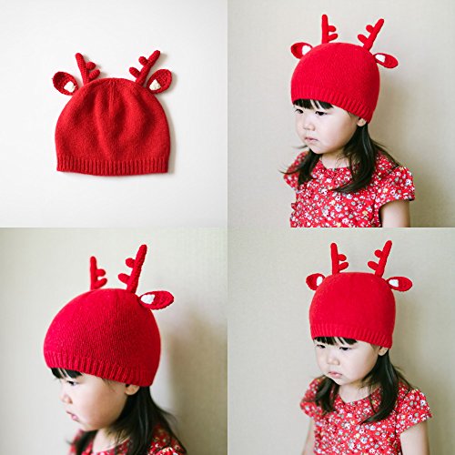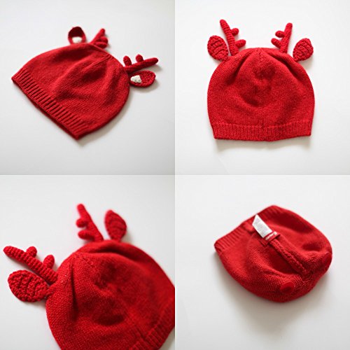 (ビグッド)Bigood 可愛い 毛糸 ニット帽 赤ちゃん ベビー帽子 男の子 クリスマス 出産祝い キッズ 女の子 秋冬 子供 ニットキャップ 耳付き しか レッド M