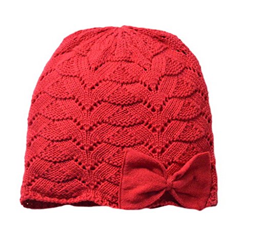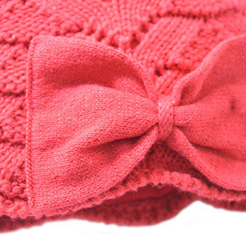 (ビグッド)Bigood 可愛い 赤ちゃん ベビー帽子 ビーニー出産祝い 新生児 ニット帽 キッズ 女の子 秋冬 子供 ニットキャップ 無地 リボン付き レッド L