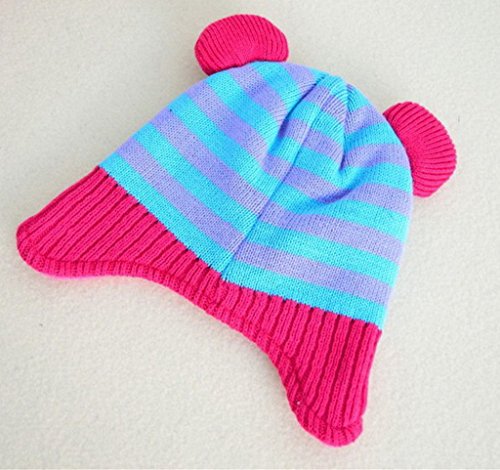 (ビグッド)Bigood 可愛い クマ 耳付き 帽子 赤ちゃん ベビーニット帽 新生児 ワッチキャップ キッズ 女の子 秋冬 子供 ニットキャップ ボーダーM