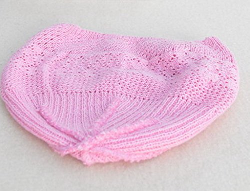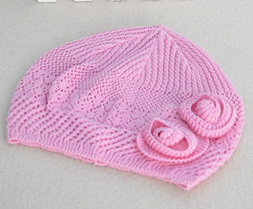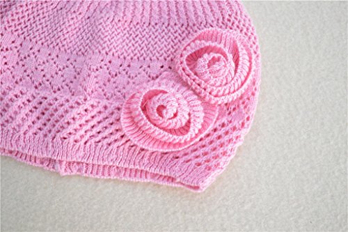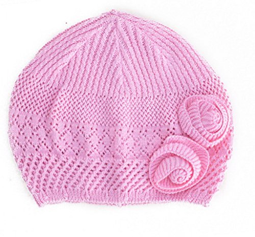 (ビグッド)Bigood 可愛い 毛糸 帽子 赤ちゃん ベビーニット帽 新生児 無地 フラワー付き ワッチキャップ キッズ 女の子 秋冬 子供 ニットキャップ ピンク S