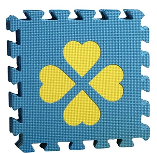 (ビグッド)Bigood ジョイントマット カラーマット ルームマット マット パズル Eva材質 フロアマット プレイマット 4枚セット クローバー図案 ブルー