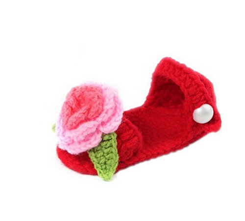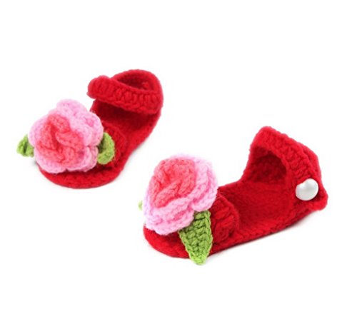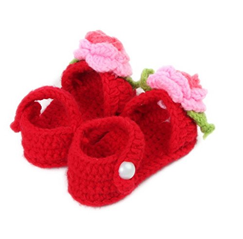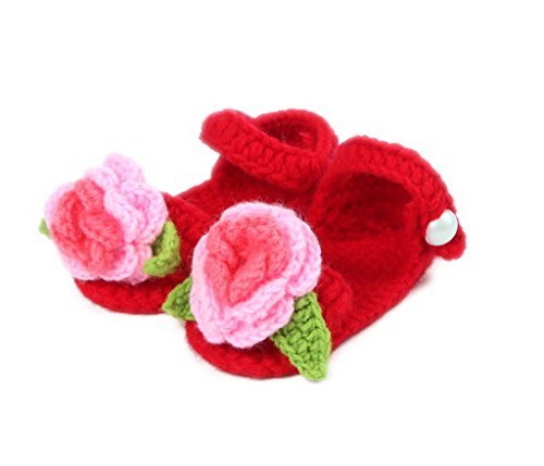 (ビグッド)Bigood ベビーシューズ 子供手作りニットシューズ かぎ針編み 男女兼用 可愛い 毛糸靴 フラワー レッドとグリーン【並行輸入品】