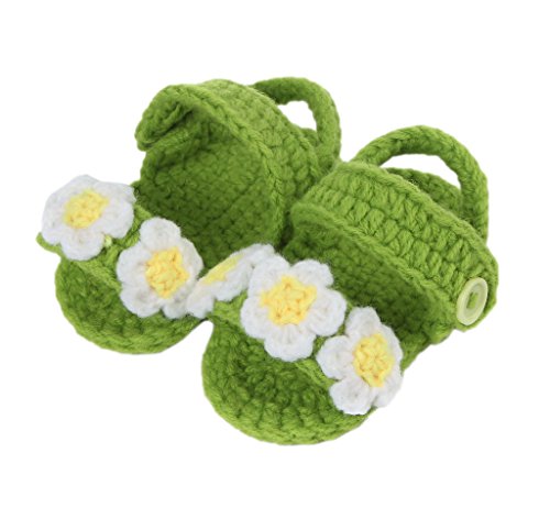 (ビグッド)Bigood ベビーサンダル ベビーシューズ 赤ちゃんサンダル 新生児 ボタンベビー用品 超可愛い 三つの花 室内用グリーン
