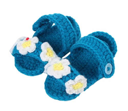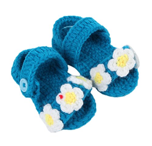 (ビグッド)Bigood ベビーサンダル ベビーシューズ 赤ちゃんサンダル 新生児 ボタンベビー用品 超可愛い 三つの花 室内用ブルー