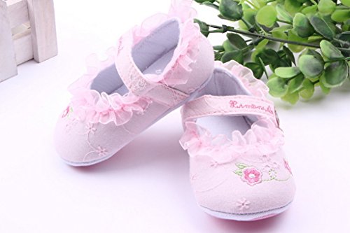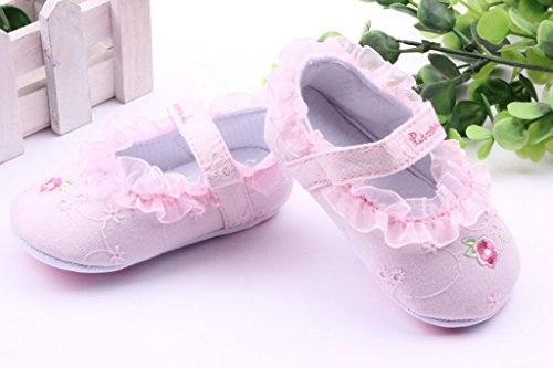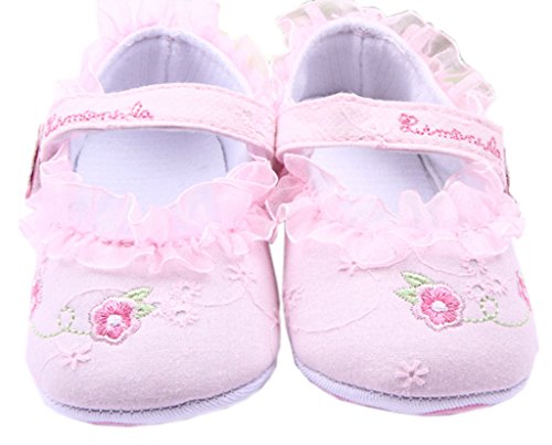(ビグッド)Bigood ベビーシューズ 女児 柔らかい フラットシューズ女の子可愛い靴 フォーマル靴 赤ちゃんシューズ 小花の刺繍ピンク13cm