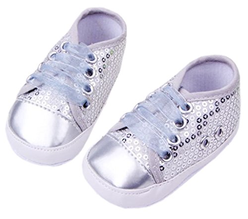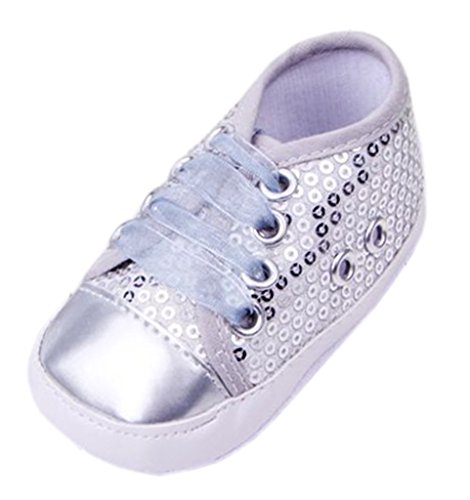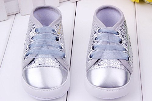 (ビグッド)Bigood ベビーシューズ女の子可愛い 赤ちゃん靴ソフト滑り止め 女の子 ルームシューズ 新生児 出産祝いレース紐シルバー13cm