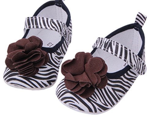 (ビグッド)Bigood 子供靴 ベビーシューズ 女の子 ベビー靴 赤ちゃんシューズ 柔らか 大きな花 フォーマル トレーニング ルームシューズ 13cm ゼブラ柄