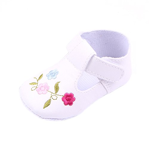 (ビグッド)Bigood ベビーシューズ 女の子 フォーマルシューズ 刺繍花 ガールズシューズ 赤ちゃん靴 滑り止め 出産祝い トレーニング 室内履き 12cm ホワイト