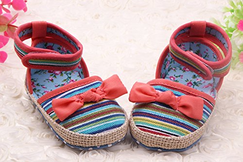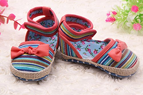 (ビグッド)Bigood 子供靴 女の子用 ベビー靴 マジックテープ ベビーシューズ ストライプ 結婚式 フォーマルシューズ プリンセス 出産祝い 室内履き 13cm ダークピンク