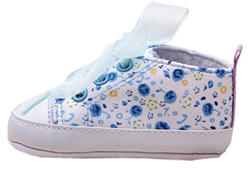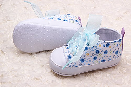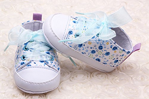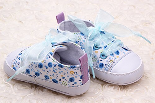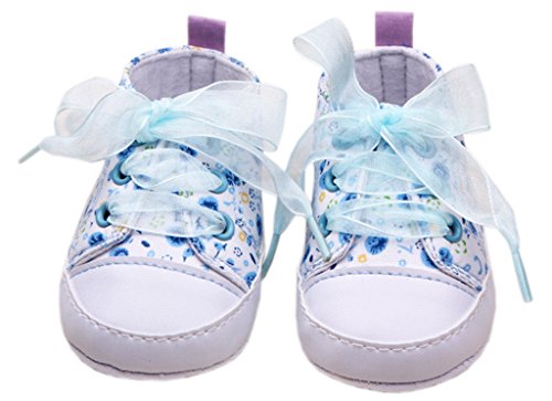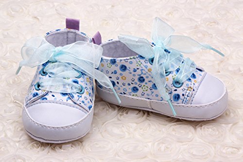 (ビグッド)Bigood 子供靴 女の子用靴 ベビー靴 ベビーシューズ 花柄 スニーカー 赤ちゃんシューズ リボン靴ひも 無地 トレーニング 出産祝い 室内履き 13cm ブルー