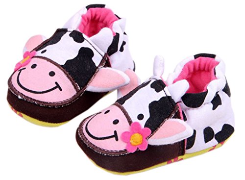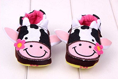 (ビグッド)Bigood 子供靴 キッズシューズ ふんわり ファーストトレーニング ベビーシューズ 室内靴 女の子 男の子 靴 ソフトソール 可愛い乳牛柄 13cm ピンク