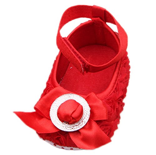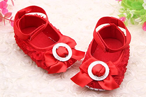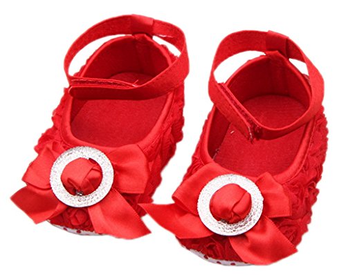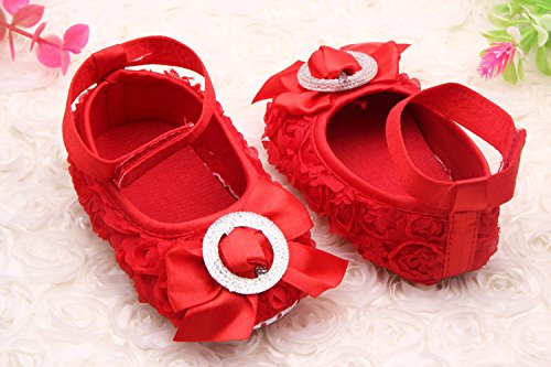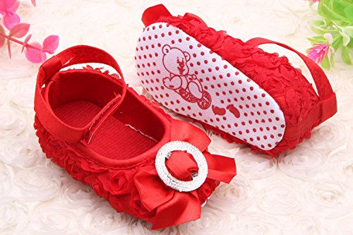 (ビグッド)Bigood ベビー靴 子供靴 女の子靴 フォーマルシューズ 赤ちゃんシューズ レース花 リボン付き トレーニング ルームシューズ 出産祝い 七五三 11cm スカーレッド