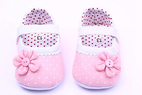(ビグッド)Bigood ベビー靴 子供靴 女の子靴 フォーマルシューズ 赤ちゃんシューズ 水玉 花飾り トレーニング ルームシューズ 出産祝い 七五三 12cm 薄桃色