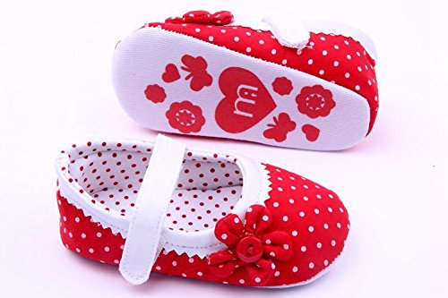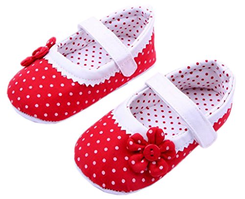 (ビグッド)Bigood ベビー靴 子供靴 女の子靴 フォーマルシューズ 赤ちゃんシューズ 水玉 花飾り トレーニング ルームシューズ 出産祝い 七五三 12cm レッド
