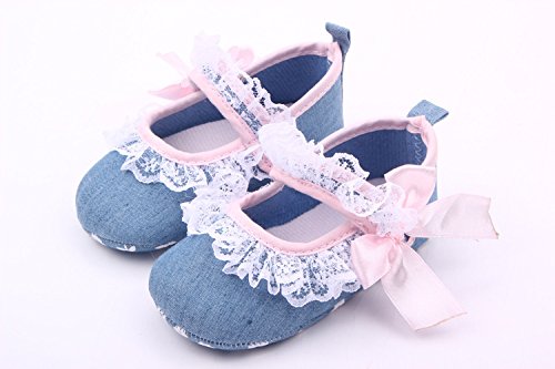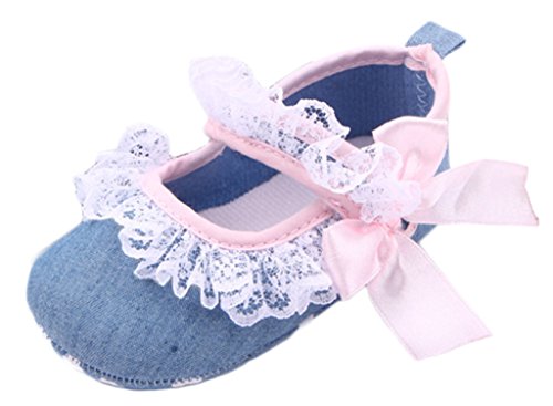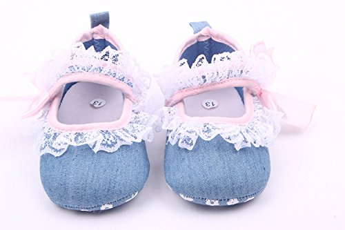 (ビグッド)Bigood 可愛い 赤ちゃん ベビー靴 レース 子供靴 女の子 プリンセス フォーマル フラット ルームシューズ デニム 出産祝い 結婚式 12cm ピンク