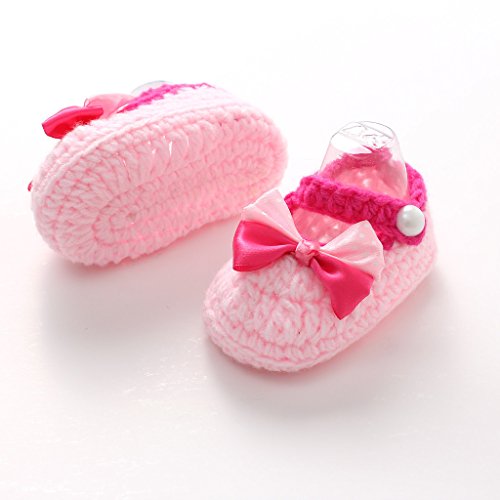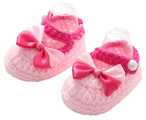 (ビグッド)Bigood 可愛い ベビーシューズ 子供用 ファーストシューズ ニット 赤ちゃん 靴 手編み 女の子 ルームシューズ 出産祝い 歩行靴 カジュアル フラワー リボン ピンク