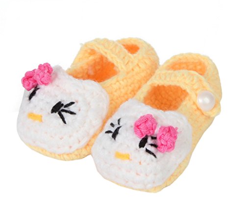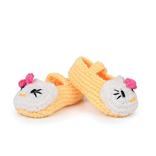 (ビグッド)Bigood 子供用 ニットシューズ ファーストシューズ ニット靴 ルームシューズ 新生児 可愛い猫ちゃん 赤ちゃん お祝い ソックス イエロー