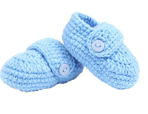(ビグッド)Bigood ニット靴 ベビーシューズ ファーストシューズ ルームシューズ 新生児 子供用 ボタン付き お祝い ソックスシンプルブルー