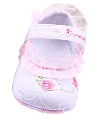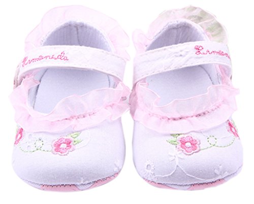 (ビグッド)Bigood ベビーシューズ 女児 柔らかい フラットシューズ女の子可愛い靴 フォーマル靴 赤ちゃんシューズ 小花の刺繍ホワイト13cm