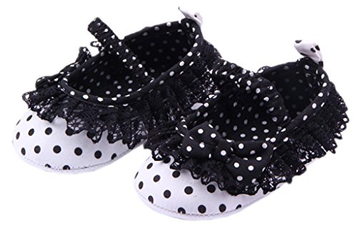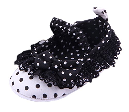 (ビグッド)Bigood 超可愛いベビーファーストシューズベビー靴 リボン水玉 滑め防ぐ靴 部屋履き ソフトソール赤ちゃんシューズブラック13cm