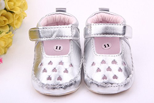 (ビグッド)Bigood 可愛い PU 子供靴 女の子 赤ちゃん ベビー靴 フォーマル フラット シューズ プリンセス 室内履き 出産祝い 結婚式 無地 シルバー13cm