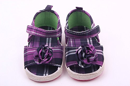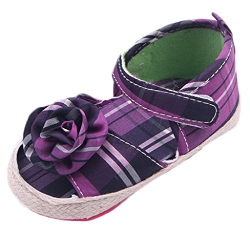 (ビグッド)Bigood 子供靴 女の子 赤ちゃん ベビー靴 フォーマル フラット ルームシューズ 出産祝い 花柄 チェック ベビーサンダル 可愛い 11cm パープル