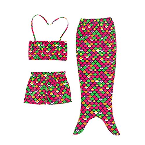 (ビグッド)Bigood 可愛い子供水着 女の子 ガールズ ビキニ セパレート スイムウェア 3点セット 人魚姫変装 写真服 撮影服 人魚コスチューム プール水遊び(カラフル*140)