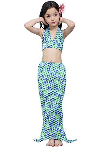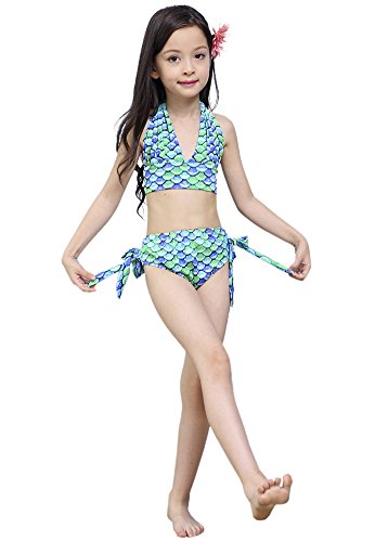 (ビグッド)Bigood 子供水着 ガールズ 人魚姫変装 ビキニセパレート スイムウェア 3点セット 写真服 撮影服 コスチューム 魚鱗柄 女の子 スイミング 水遊び温泉(緑140)