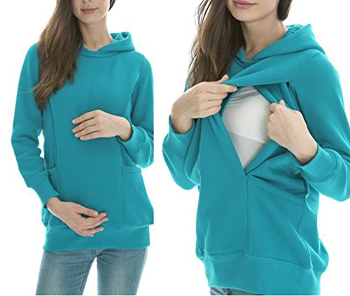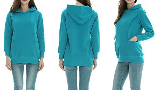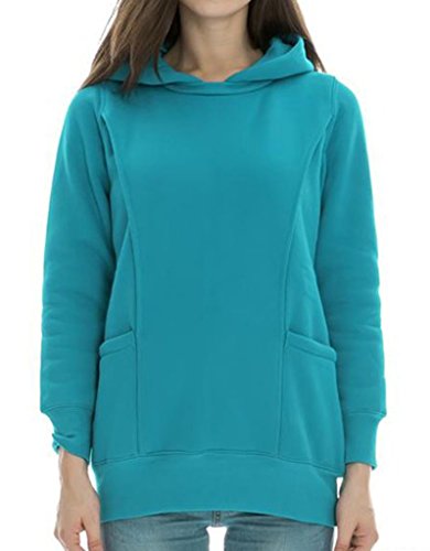 (ビグッド)Bigood パーカー レディース 無地 トレーナー プルオーバーパーカー スウェット 秋冬 カジュアル オーバーパーカー マタニティ 授乳服(ブルーM)