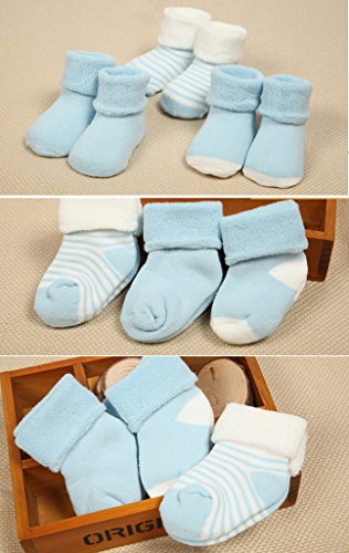 (ビグッド)Bigood 赤ちゃん 新生児 ソックス 柔らかい靴下 ルームソックス かわいい ベビー 保温ソックス 出産祝い 3足セット(ブルーS)