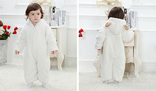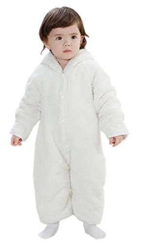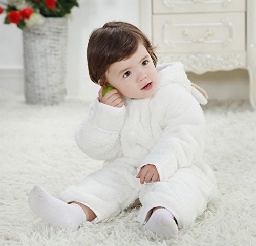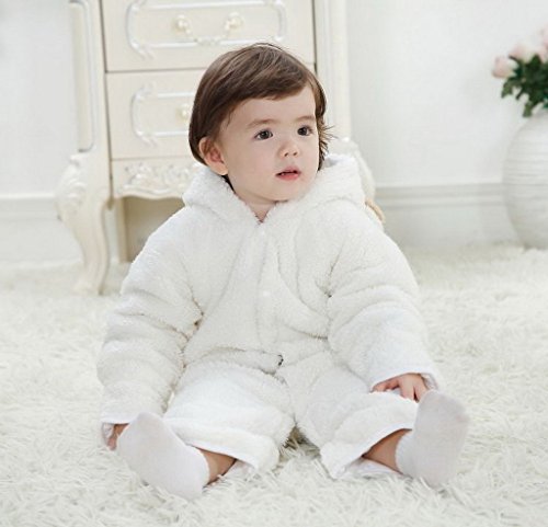 (ビグッド)Bigood ベビー カバーオール 男の子 ロンパース フード 秋 冬 防寒 無地 ジャンプスーツ 赤ちゃん 新生児 子供 女の子 フリース 長袖 白 95