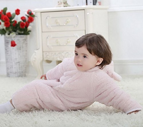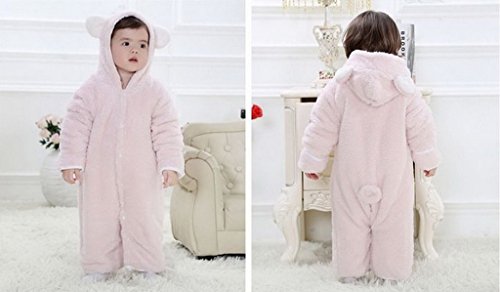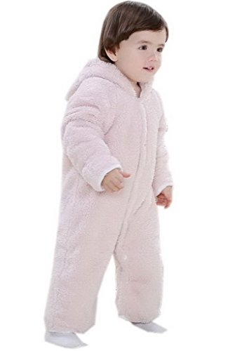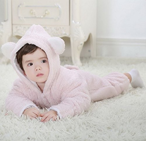 (ビグッド)Bigood ベビー カバーオール 男の子 ロンパース フード 秋 冬 防寒 無地 ジャンプスーツ 赤ちゃん 新生児 子供 女の子 フリース 長袖 ピンク 90