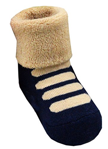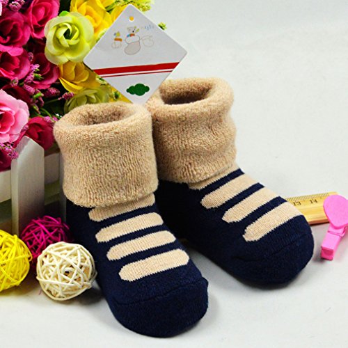 (ビグッド)Bigood 赤ちゃん ベビー 男の子 女の子用 可愛い 新生児 ベビーソックス 靴下 ソックス キッズ 靴下 柔らかい靴 ベビー靴下 秋冬 保温ソックス ボーダー ブルーとコーヒーM
