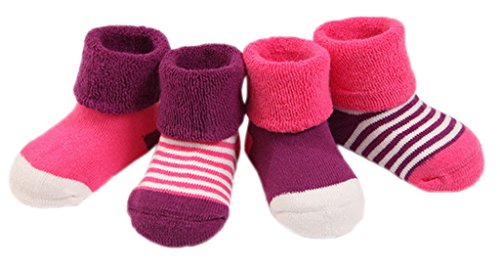 (ビグッド)Bigood ベビー 赤ちゃん 新生児 4足セット ソックス アニマル柄 ルームソックス かわいい 柔らかい靴下 保温ソックス 出産祝い(Cローズ色S)