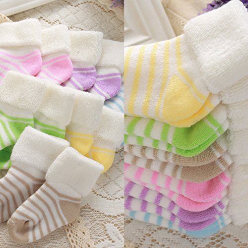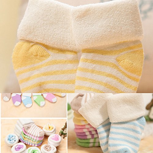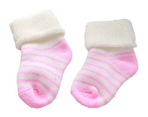 (ビグッド)Bigood かわいい ボーダー柄 ソックス ベビー 赤ちゃん 靴下 ルームソックス カジュアル ふわふわ ソックス 靴下 新生児 保温ソックス(ピンクM)