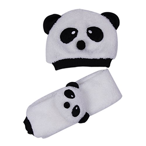 (ビグッド)Bigood かわいい ニット帽子&マフラーセットキッズ 赤ちゃん ベビー用 帽子 パンダ模様 防寒 暖かい 幼児 ニットキャップ ホワイト