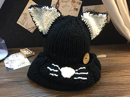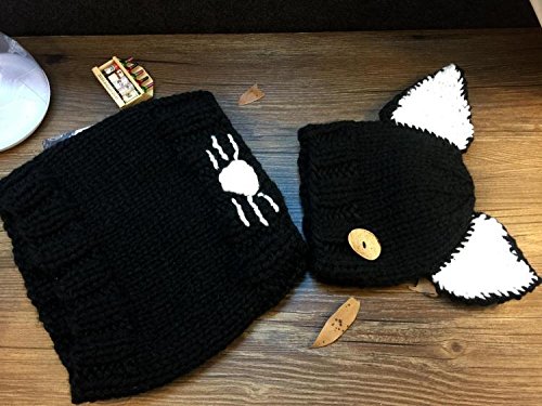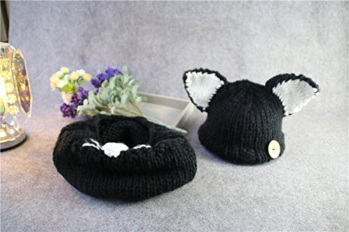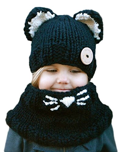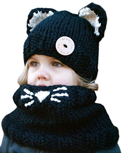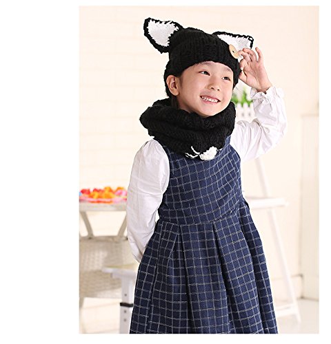 (ビグッド)Bigood キュート ネコ耳付き ニット帽子&マフラー セット ニットネックウォーマー ニットキャップ 子供帽子 男の子 女の子 赤ちゃん 子供 用 冬 防寒 暖か ブラック