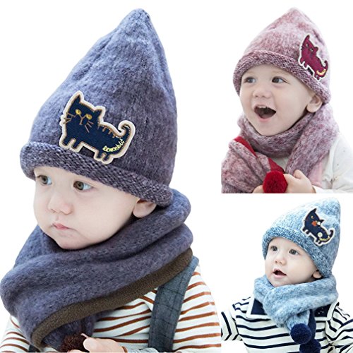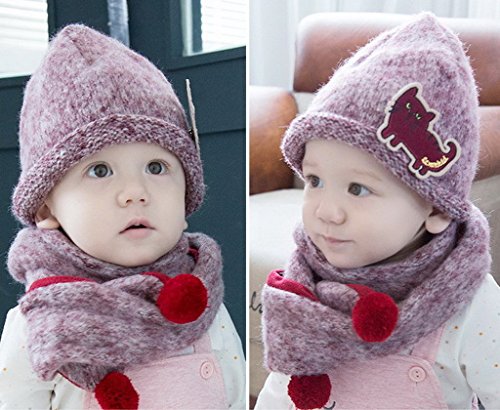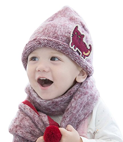 (ビグッド)Bigood 可愛い 赤ちゃん 帽子 ニット帽・マフラー セット 暖かい 女の子 男の子 ニットキャップ 子供 通学 通園 クリスマス(レッド)